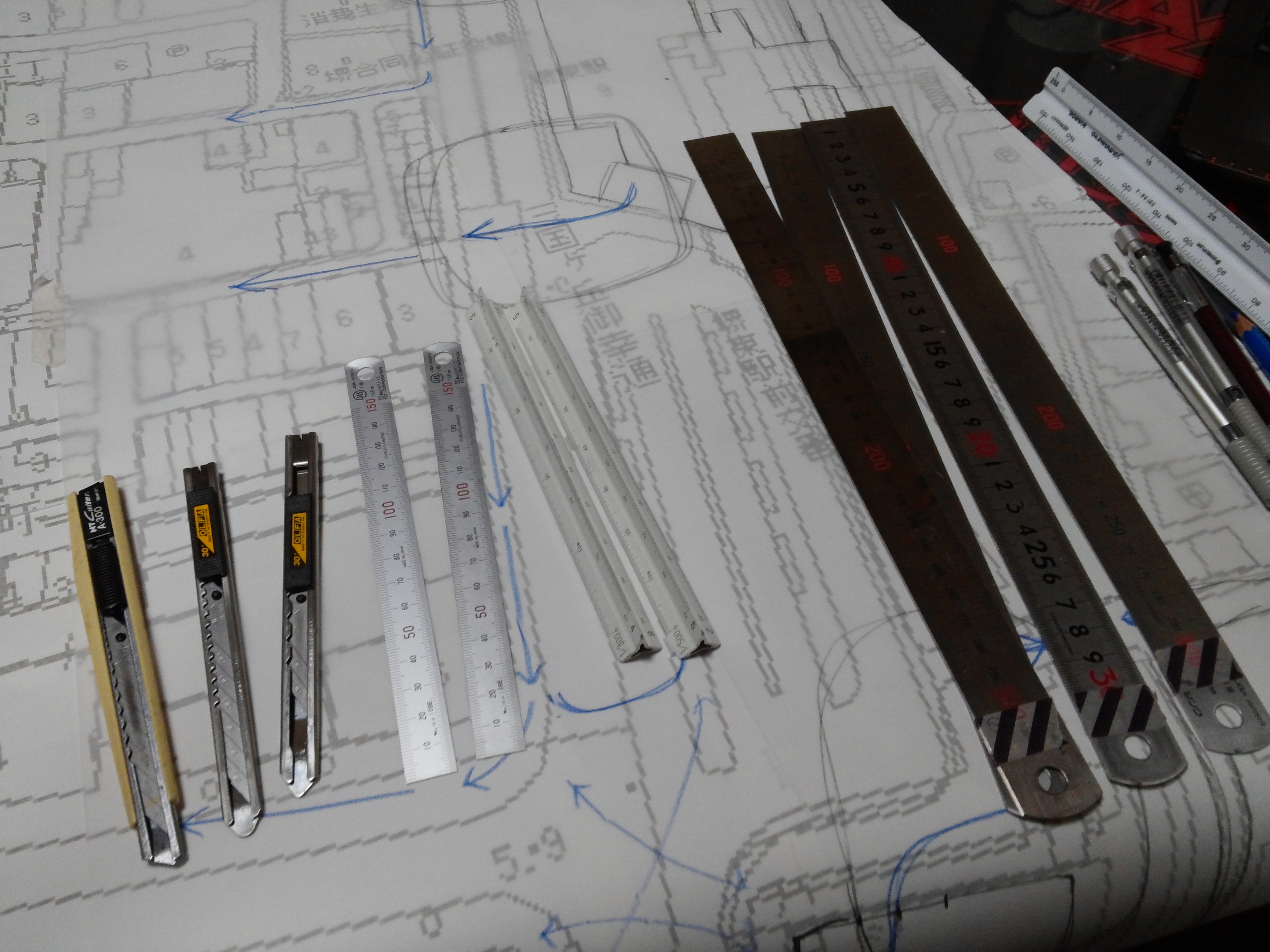 金尺やら、カッターやら、