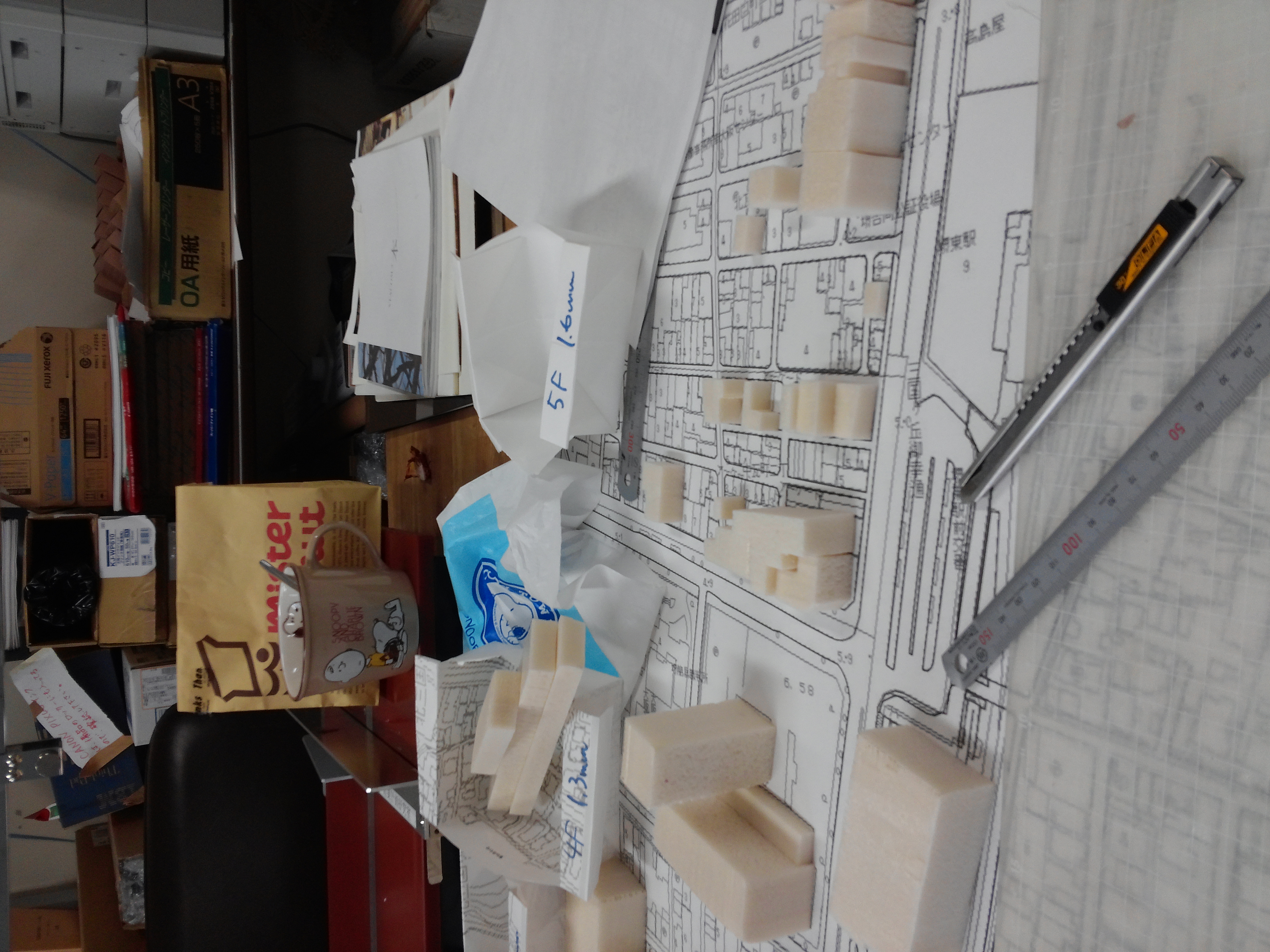 それにあたり、ボリュームアウトしてる建物(高島屋ビルと駐車場、駅舎、マンション、ショッピングセンター)を刻んでいって、