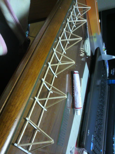 夕べ貫徹して作ったはいいけど、作ってから……これは建てない…と、気付いた俺です。今から学祭に行ってお茶会とうどんです。帰ってからは図面から考え直し。今3m四角錐で組んでるんだけど、ホームに2列で並べないといけないから、最低でも半分の1.5mで組まなきゃいけない。脳内イメージではけっこうきもい。竹串がもうちょっと細い材だったらまだ、よかったのにな。ホームから飛び出すことも考えておいたほうが良さそうです。